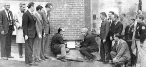 Nickerson & O’Day find time capsule behind the cornerstone at the Bangor Y Second Street location nearly 40 years after helping place it!