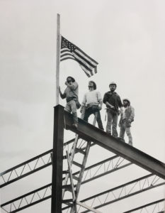 NOD President Karl Ward helping the children sign the last piece of steel at the Steel Topping Off Ceremony for UMaine’s new Emera Astronomy Center & Maynard F. Jordan Planetarium and Observatory