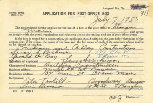 Nickerson & O’Day Inc’s original Bangor P.O. Box 911 Application