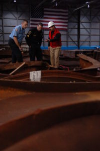 Selecting World Trade Center steel at Hangar 17, JFK Airport